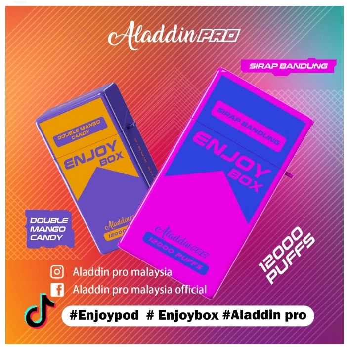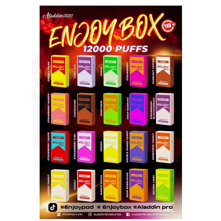 The Enjoy Box 12000 Puffs Disposable Pod Kit by Aladdin Pro is a high-capacity, rechargeable disposable vape device designed for extended use and a rich flavor experience.