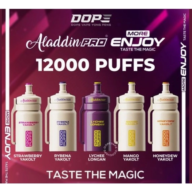 The Aladdin Pro More Enjoy 12000 Puff is a rechargeable disposable pod system offering approximately 12,000 puffs per device. This product is designed for convenience and extended use, featuring a replaceable flavor cartridge that allows users to switch flavors without needing to replace the entire device.