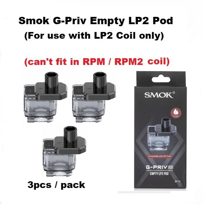 The smok G-Priv Replacement Pod is the original pod cartridge crafted for G-Priv and G-Priv Pro Pod Systems, featuring sliding top filling system to hold 5.5ml of your favorite E-juices, available in LP2 Pod and RPM 2 Pod respectively compatible with LP2 Coils and RPM 2 Coils.