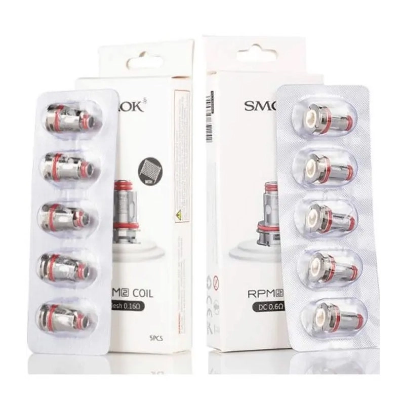 SMOK RPM 2 Coils (5-Pack), featuring a 0.6ohm DC MTL Coil, 0.16ohm Mesh Coil, and is installed in a press fit manner, with MTL or DTL options.