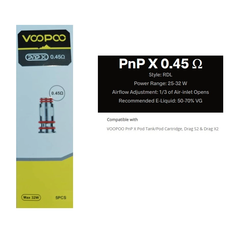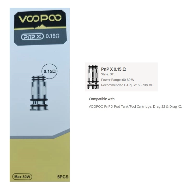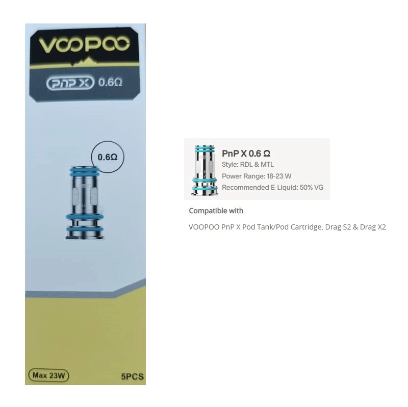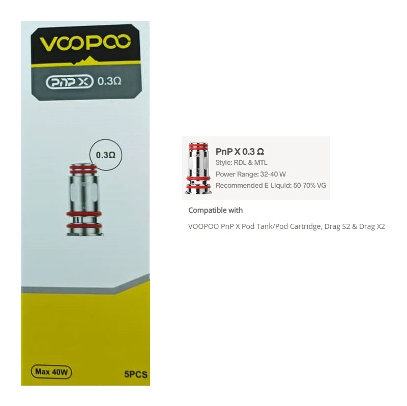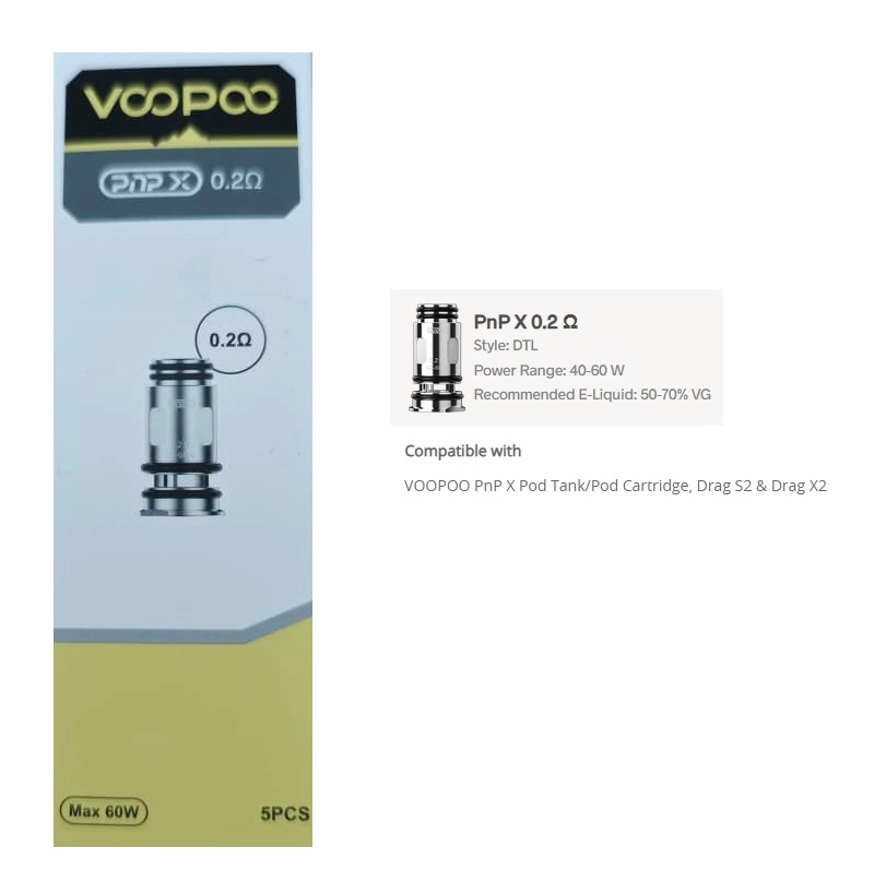 The VooPoo PnP X Replacement Coils are recommend for VooPoo Drag X2, Drag S2, Argus Pro 2, Vinci Spark 100, and PnP X pod vape kits for mouth-to-lung (MTL), restricted-direct-lung (RDL), and direct-to-lung (DTL) vaping, these mesh-built coils come in five different resistances and power levels.